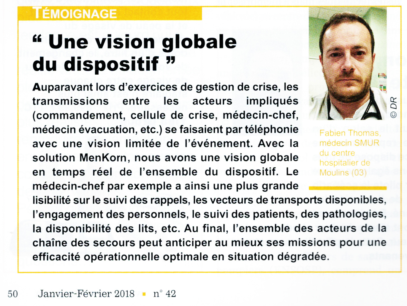 « Un outil qu’on utilise bien est un outil qu’on utilise souvent », tel pourrait être le sens de la présence de MenKorn dans le dernier numéro de SecoursMag.